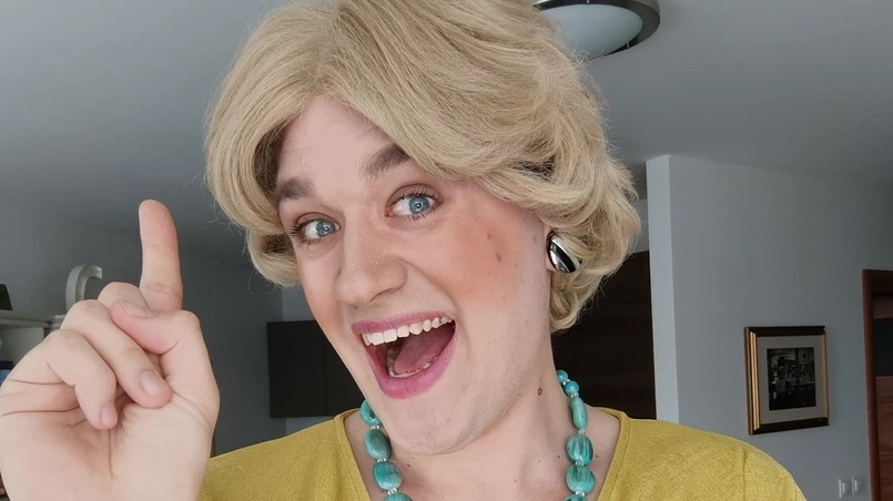 Ciotka przyszła na świat w 2022 roku, kiedy trwało Boże Ciało. Szła procesja pod moim blokiem. Pomyślałem, że nagram sobie panią, która idzie na procesję Bożego Ciała, oczywiście wiadomo, w jakim celu, ale przy okazji obgada jeszcze koleżankę, pogada o pogodzie i nowych rajstopach. Nie miałem wtedy jeszcze TikToka, tylko prywatne konto na Instagramie. Nagrałem kilka filmików z tą wymyśloną panią z procesji i wrzuciłem na InstaStories. Moi znajomi zaczęli mi mówić, że muszę założyć TikToka, bo to idealne dla mnie miejsce.