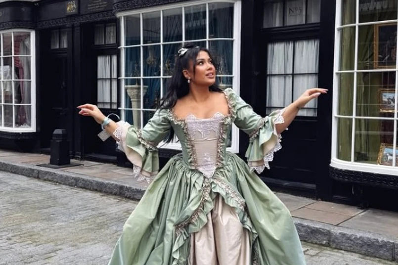 Do opisu prezenterka dodała serię zdjęć z planu filmowego. Na razie Kazadi nie zdradziła jeszcze, w jaką postać wcieli się w najnowszej, 4 części, "Bridgertonów".