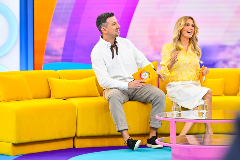 Później prowadzący zaczęli rozmawiać z Aleksandrem Sikorą , którego widzowie doskonale pamiętają jako prowadzącego "Pytanie na śniadanie". - Olek, czy ty kiedyś pracowałeś w tak pięknym, kolorowym studiu o poranku? - zapytał Maciej Rock.